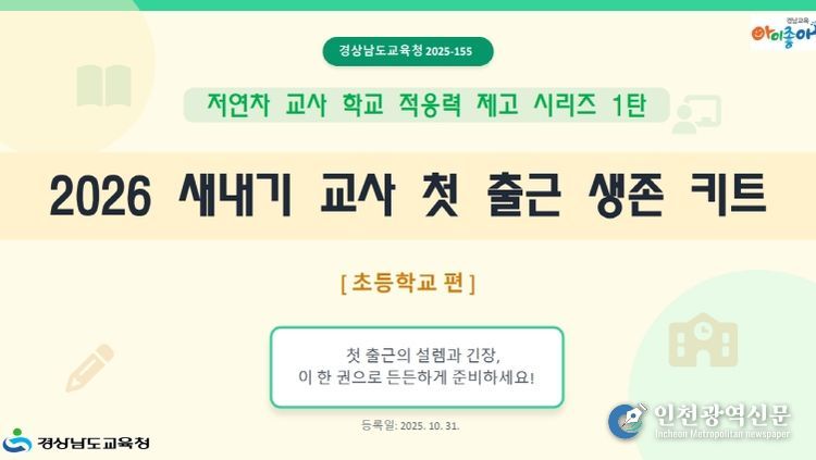 [인천광역신문] 박진 기자 | 경상남도교육청은 22일부터 도내 초등학교 신규 교사의 안정적인 학교 정착을 지원하기 위한 『2026 새내기 교사 첫 출근 생존 키트』를 도내 전 초등학교에 배포한다.