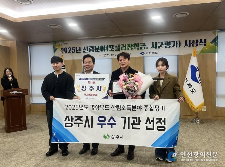 [인천광역신문] 박진 기자 | 상주시는 22일 경상북도가 주관한 2025년도 산림소득분야 종합평가에서 우수기관으로 선정돼 우수상을 수상했다.