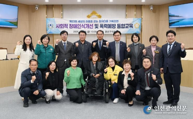 [인천광역신문] 박진 기자 | 광산구의회가 19일 전체 의원을 대상으로 장애인식 개선 및 4대 폭력 예방을 위한 ‘정치다움 기획강연’을 개최했다.