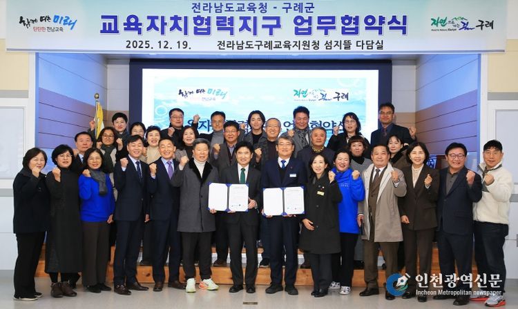 [인천광역신문] 박진 기자 | 구례군은 지난 19일, 구례교육지원청 섬지뜰 다담실에서 전라남도교육청, 구례교육지원청, 구례군의회, 학교장, 민관산학위원, 학부모연합회 등 50여명이 참석한 가운데‘구례교육자치협력지구’업무협약을 체결했다고 밝혔다.