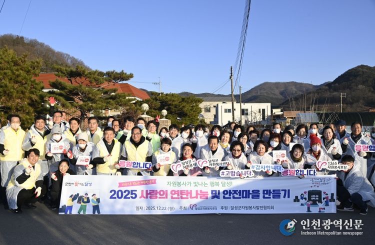 [인천광역신문] 박진 기자 | 달성군자원봉사센터(센터장 송종구)는 12월 22일 달성군 관내 에너지·안전 취약계층 9가구를 대상으로 연탄 총 3,150장(1가구당 350장)과 화재 안전 예방키트를 전달하는 ‘2025 사랑의 연탄나눔 및 안전마을 만들기’ 활동을 추진했다.