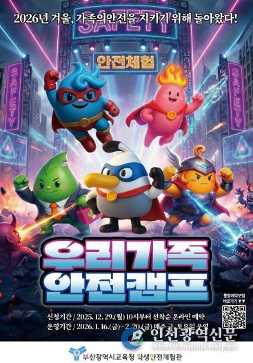 [인천광역신문] 박진 기자 | 부산광역시교육청 학생안전체험관은 겨울방학을 맞아 내년 1월 13일부터 2월 20일까지 부산 시민과 학생을 대상으로 ‘가족·일반인 안전체험 및 우리가족 안전캠프’를 운영한다고 밝혔다.