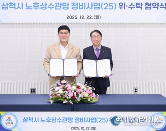[인천광역신문] 박진 기자 | 삼척시는 노후 상수관망 정비사업의 효율적인 추진을 위해 12월 22일 오전 11시, 삼척시청 소회의실에서 한국수자원공사(K-water) 한강유역본부와 위수탁 협약을 체결했다.