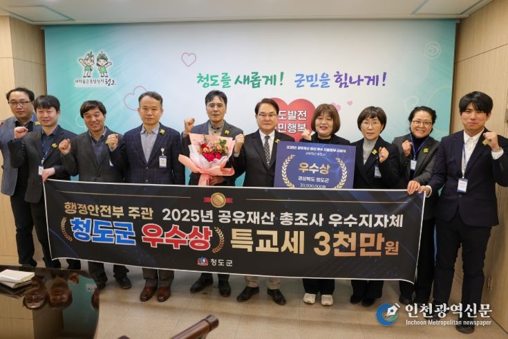 [인천광역신문] 박진 기자 | 청도군은 지난 22일 행정안전부가 주관한 '2025년 공유재산 관리 분석·진단 및 총조사 평가'에서 ‘공유재산 총조사 우수 지자체’로 선정됐다.