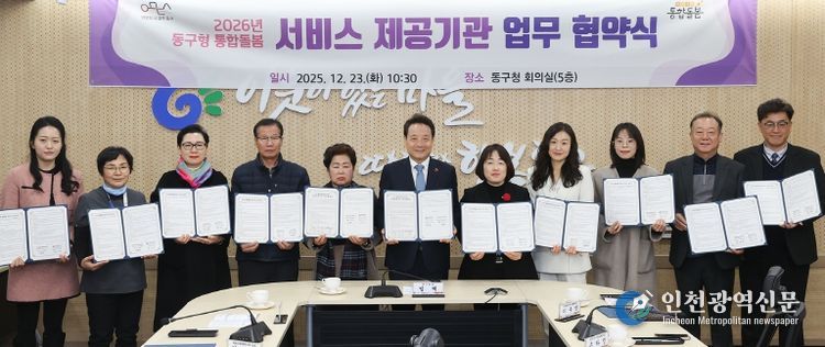 [인천광역신문] 박진 기자 | 광주 동구는 지난 23일 구청에서 동구지역자활센터 등 11개 서비스 제공기관과 업무협약을 체결하고, 2026년 ‘동구형 통합돌봄’ 사업을 본격 추진한다고 밝혔다.