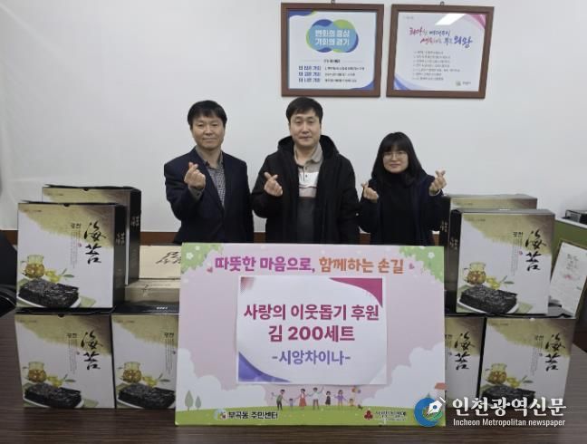 [인천광역신문] 박진 기자 | 의왕시 부곡동에 위치한 중식당 시앙차이나가 12월 23일 부곡동주민센터를 방문해 관내 취약계층에게 전달해달라며 조미김 200상자를 기탁했다.