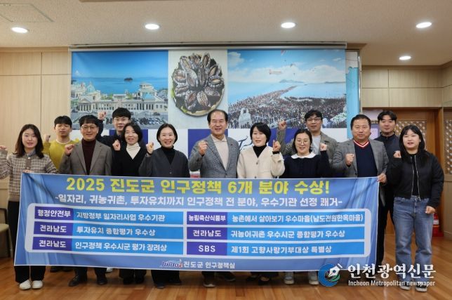 [인천광역신문] 박진 기자 | 진도군이 2025년 한 해 동안 인구정책 6개 분야에서 잇따라 우수기관으로 선정되며, 인구정책 추진 성과를 대외적으로 인정받았다.