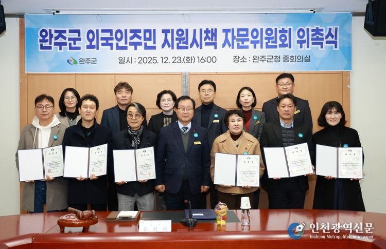 [인천광역신문] 박진 기자 | 완주군이 외국인 주민 지원 정책의 체계적 추진을 위해 ‘외국인주민 지원시책 자문위원회’를 구성하고, 지난 23일 중회의실에서 위촉식을 열었다.