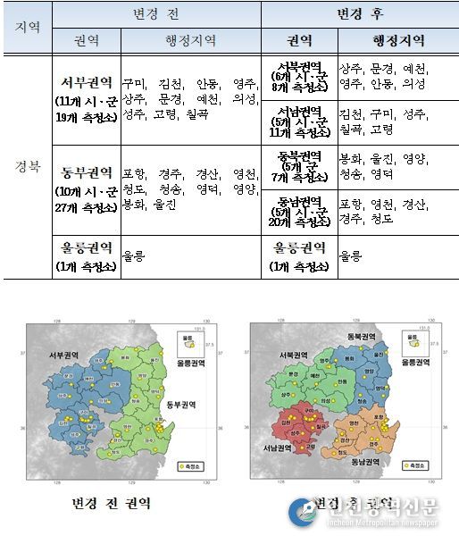 [인천광역신문] 박진 기자 | 경북도 보건환경연구원은 2026년 1월 1일부터 경북의 대기질 모니터링 강화를 위해 미세먼지 경보제 발령권역을 기존 3개 권역에서 5개 권역으로 더 세분화하여 운영한다.