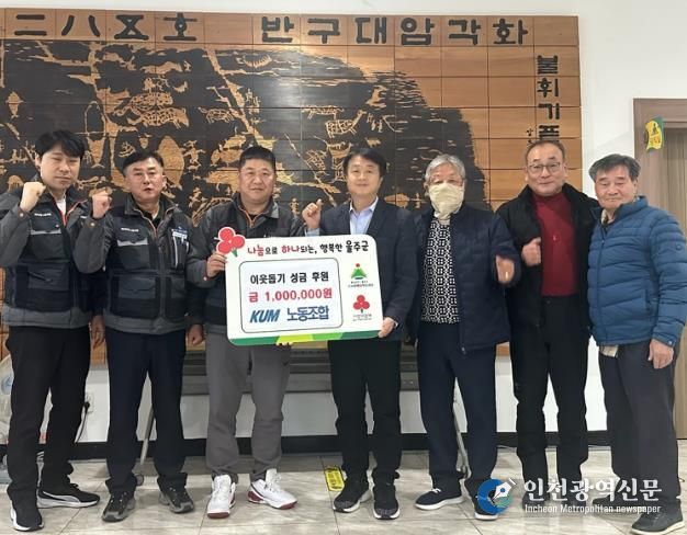 [인천광역신문] 박진 기자 | KUM노동조합이 24일 울주군 두서면 취약계층을 돕기 위해 성금 100만원을 기탁했다.