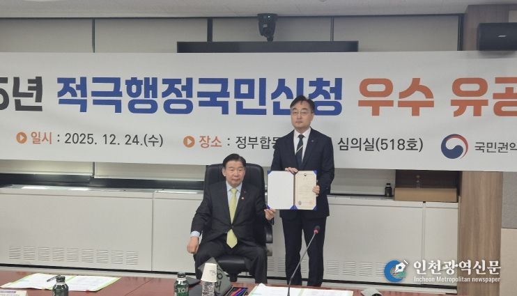 [인천광역신문] 박진 기자 | 한국전력이 12월 24일 국민권익위원회가 주최한 ‘2025년도 적극행정국민신청 유공’ 시상식에서 ‘우수기관’ 및 ‘우수직원’ 2개 부문에서 국민권익위원장상을 수상했다.