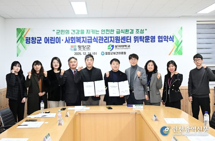 [인천광역신문] 박진 기자 | 평창군은 상지대학교 산학협력단과'2026~2028년 평창군 어린이·사회복지 급식 관리지원센터 위탁운영 협약'을 12월 24일 체결했다고 밝혔다.
