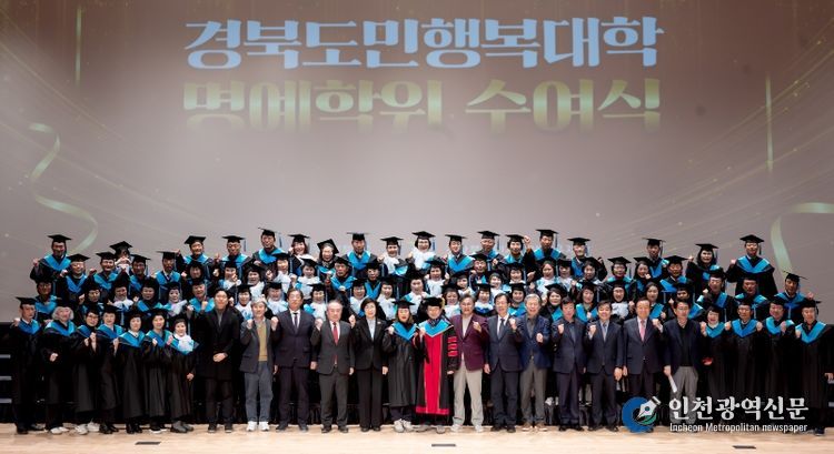 [인천광역신문] 박진 기자 | 경상북도는 24일 도청 동락관에서 경북도민행복대학 21개 시군 캠퍼스(학사) 및 6개 대학캠퍼스(석·박사) 관계자 등 600여 명이 참석한 가운데, 학사 866명, 석사 142명, 박사 60명 등 총 1,068명에 대한 ‘경북도민행복대학 명예학위 수여식’을 개최했다.