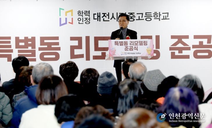 [인천광역신문] 박진 기자 | 대전시의회 조원휘 의장은 24일 대전시립중고등학교 특별동 리모델링 공사 준공식에 참석해 준공을 축하하며, 배움을 향한 만학도들의 꿈과 용기를 응원했다.