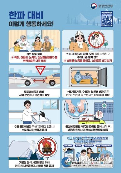 경남도는 옥외전광판, 재난안내문자, TV·자막방송, 공동주택관리 통합플랫폼(GN-home) 등을 활용해 한파 행동 요령, 한파 안전 5대 기본수칙, 재난정보를 적극 홍보하고, 정보전달이 어려운 고령층을 위해 ‘행복 SMS 알림서비스’도 적극 제공한다.