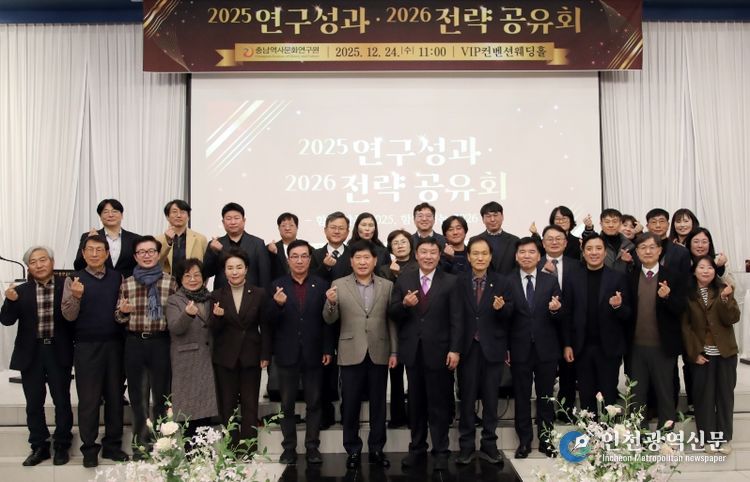 [인천광역신문] 박진 기자 | 충남역사문화연구원은 24일 오전 11시 공주 브이아이피웨딩홀에서 ‘연구원 성과·전략 공유회’를 열고 2025년 주요 성과를 공유하는 한편 2026년 추진 전략을 대내외에 제시했다.