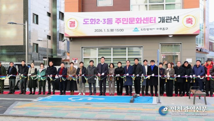 [인천광역신문] 박진 기자 | 인천 미추홀구는 지난 5일 주민들의 문화 향유 기회 확대와 지역 공동체의 활성화를 위한 도화2·3동 주민문화센터 개관식을 개최했다고 밝혔다.