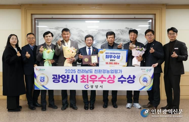 [인천광역신문] 박진 기자 | 광양시는 전라남도 주관 ‘2025년도 친환경농업대상’ 평가에서 벼 이외 과수·채소 등 품목 다양화와 저탄소 농산물 인증 면적 대폭 증가 등 우수한 성과를 인정받아 최우수상을 수상했다고 밝혔다.