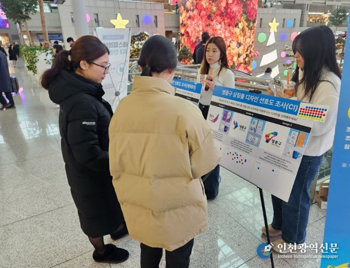 [인천광역신문] 박진 기자 | 인천시 중구는 지난 12일 인천국제공항에서 공항 이용객들을 대상으로 ‘영종구 상징물(CI, 캐릭터)’ 선정과 관련한 현장 선호도조사를 성황리에 진행했다고 밝혔다.