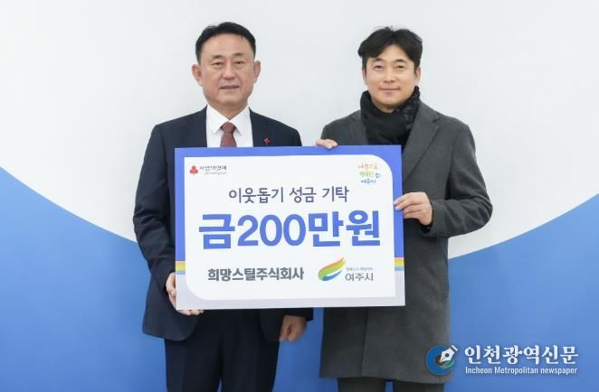 [인천광역신문] 박진 기자 | 지난 19일 여주시 삼교동 소재 희망스틸주식회사 김영기 대표는 여주시를 방문하여 이웃돕기 성금 200만원을 기탁했다.