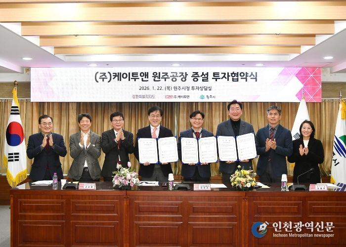 [인천광역신문] 박진 기자 | 원주시와 강원특별자치도는 22일 오후 3시 30분, 원주시청 7층 투자상담실에서 ㈜케이투앤과 공장 증설을 위한 투자협약을 체결했다.