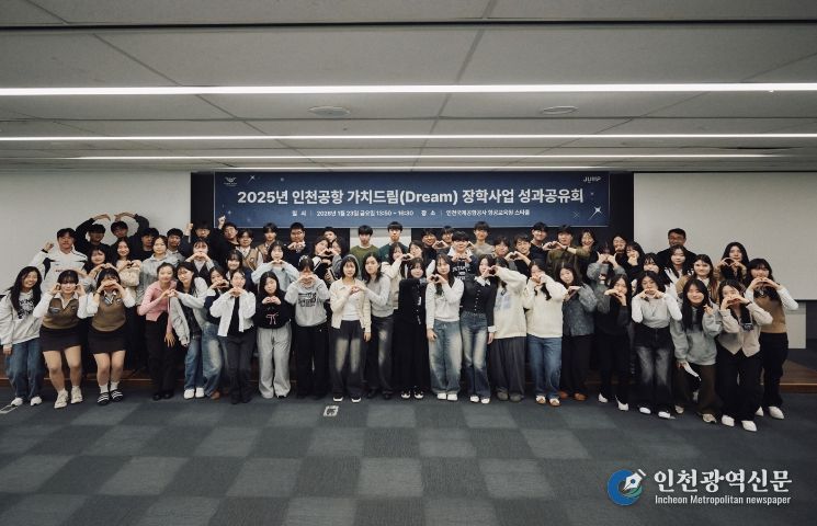 [인천광역신문] 박진 기자 | 인천국제공항공사(사장 이학재)는 23일 오후 공사 항공교육원에서 영종 지역 인재들의 꿈을 응원하고 성장을 축하하는 ‘2025 인천공항 가치드림(Dream) 장학사업 성과 공유회’를 개최했다고 밝혔다.