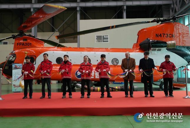 [인천광역신문] 박진 기자 | 산림청은 산림항공본부에서 국내 최초 민수용 대형헬기 시누크 1대를 신규 도입하고 도입식을 개최했다고 23일 밝혔다.