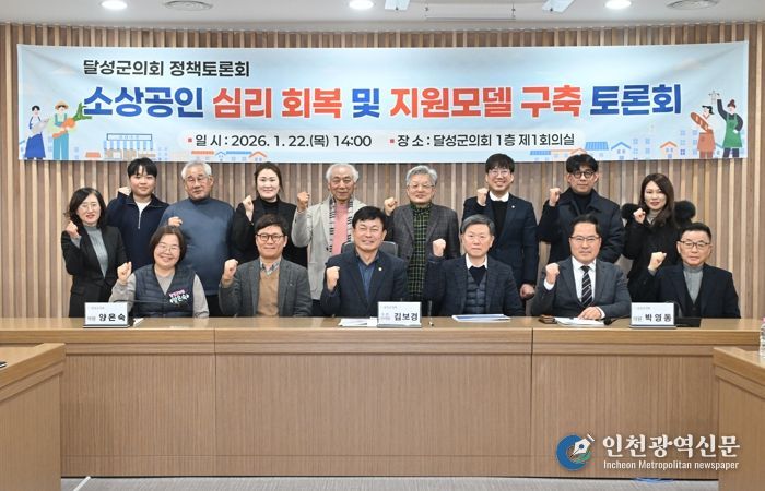 [인천광역신문] 박진 기자 | 달성군의회 김보경 부의장은 22일 오후 2시, 의회 1층 제1회의실에서 ‘달성군 소상공인 심리 회복 및 지원모델 구축’을 주제로 정책토론회를 개최했다. 이번 토론회는 달성군 내 지역 소상공인의 우울·불안·강박·공황·대인 갈등 등 심리적 어려움을 극복하기 위한 소상공인 특화 심리상담 서비스 도입 방안을 논의하기 위해 마련됐다.