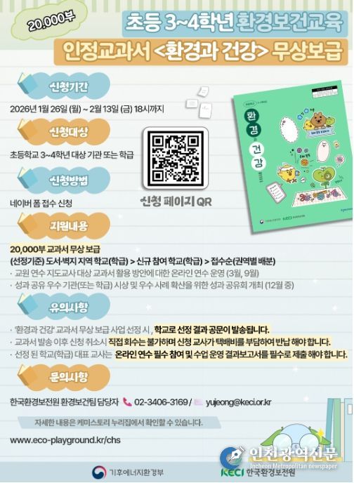 [인천광역신문] 박진 기자 | 초등학생들의 환경 및 건강 역량을 키우기 위해 환경보건 인정교과서가 무상으로 보급되어 어린이 건강 보호에 힘을 보탠다.