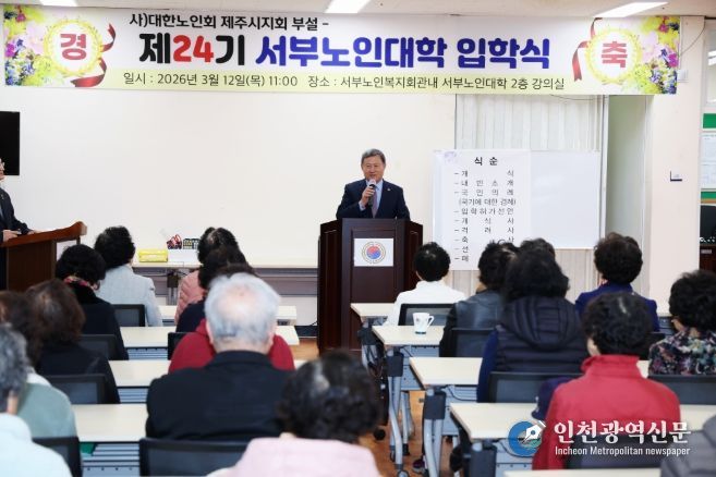 [인천광역신문] 관리자 기자 | 김완근 제주시장은 3월 12일 서부노인복지회관에서 열린 제24기 제주시서부노인대학 입학식에 참석해 어르신들에게 축하와 존경의 마음을 전했다.