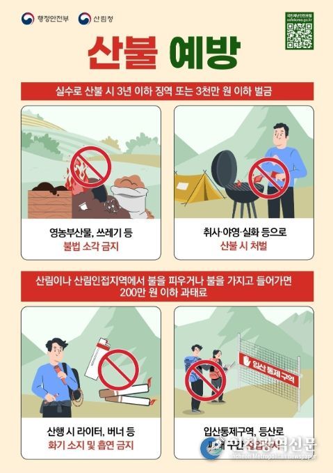[인천광역신문] 관리자 기자 | 정부는 봄철 산불 위험에 대비해 3월 14일부터 4월 19일까지를 ‘대형산불 특별대책기간’으로 지정하고 범정부 차원의 협력 대응체계를 본격 가동한다.