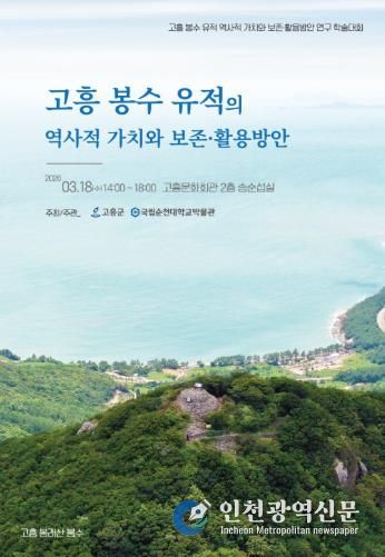 [인천광역신문] 관리자 기자 | 고흥군은 오는 18일 고흥종합문화회관 송순섭실에서 ‘고흥 봉수 유적의 역사적 가치와 보존·활용방안 학술대회’를 개최한다고 밝혔다.