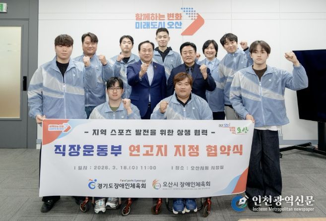 [인천광역신문] 관리자 기자 | 오산시장애인체육회장은 지난 18일 시청 시장실에서 경기도장애인체육회와 직장운동경기부 연고지 지정 협약을 체결하고 지역 스포츠 발전과 전문체육 활성화를 위한 협력체계를 구축했다고 밝혔다.