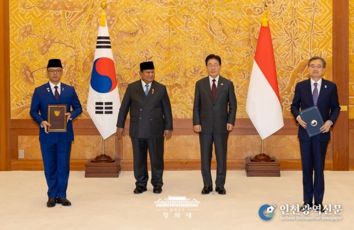 [인천광역신문] 관리자 기자 | 이재명 대통령은 1일 국빈 방한 중인 프라보워 수비안토 인도네시아 대통령과 정상회담을 갖고, '한-인도네시아 특별 포괄적 전략 동반자 관계 수립에 관한 공동성명'을 채택했다.