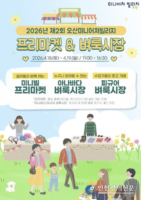 [인천광역신문] 최예준 기자 | 오산시 대표 복합문화공간인 오산미니어처빌리지는 오는 4월 18일부터 19일까지 이틀간 ‘제2회 프리마켓 및 벼룩시장’을 개최한다고 밝혔다.