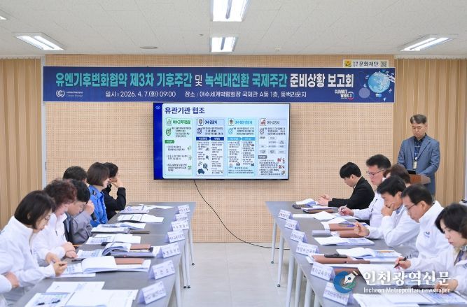 [인천광역신문] 최예준 기자 | 여수시가 7일 ‘제3차 유엔기후변화협약(UNFCCC) 기후주간 및 녹색대전환(GX) 국제주간’의 성공적인 개최를 위해 시장 권한대행 주재로 3차 준비상황 보고회를 열고 막바지 점검에 나섰다.