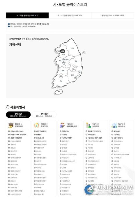 [인천광역신문] 최예준 기자 | 중앙선거관리위원회는 6월 3일 실시하는 제9회 전국동시지방선거를 앞두고 지역별 유권자의 관심 이슈를 정리한 「공약이슈트리」 서비스를 정책공약마당 사이트에서 공개했다.