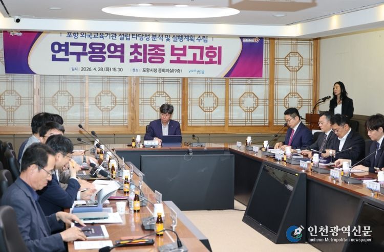 [인천광역신문] 최예준 기자 | 포항시는 28일 경상북도, 대구경북경제자유구역청이 참석한 가운데 ‘외국교육기관 설립 타당성 조사 및 실행계획 수립 연구용역’ 최종보고회를 개최했다.