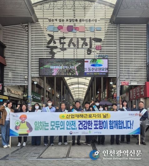 [인천광역신문] 최예준 기자 | 포항시는 28일 ‘산업재해근로자의 날’을 맞아 죽도시장 일원에서 유관기관과 함께 시민과 근로자를 대상으로 산업재해 예방 및 안전문화 확산을 위한 합동 캠페인을 실시했다.