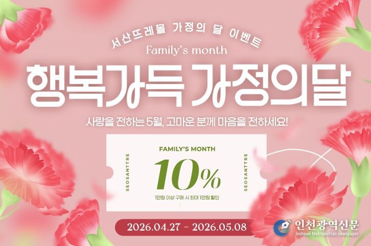 서산뜨레몰에서는 5월 8일까지 전 품목 구매 시 사용할 수 있는 10% 할인쿠폰(최대 1만 원 할인)을 제공한다.