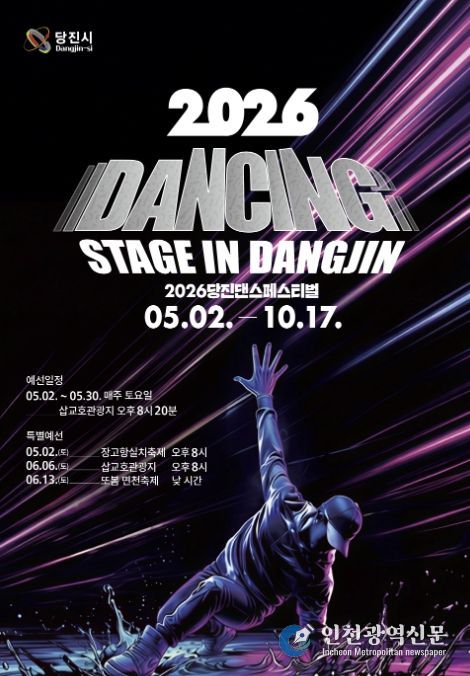 [인천광역신문] 최예준 기자 | 당진시는 시민과 관광객이 함께 즐기는 당진 댄스 페스티벌 ‘2026 댄싱 스테이지 in 당진’ 본선 진출팀 선발을 위한 예선을 오는 5월 2일부터 6월 13일까지 매주 토요일 개최한다고 29일 밝혔다.