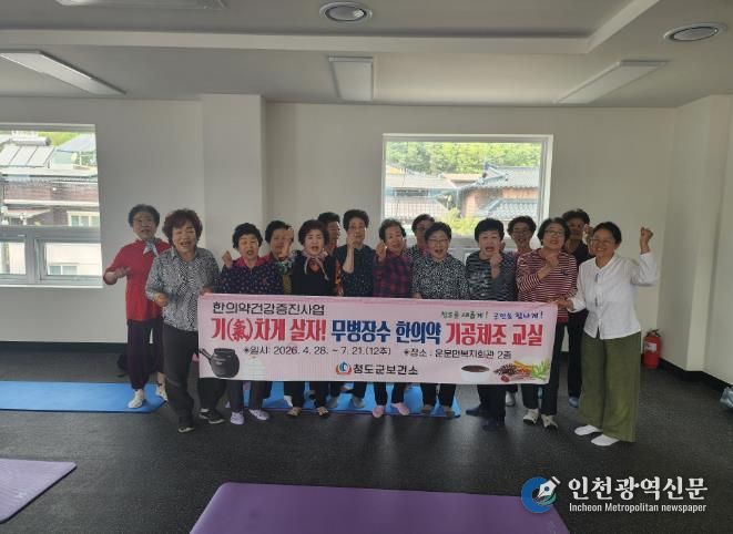 [인천광역신문] 최예준 기자 | 청도군은 한의약건강증진사업의 일환으로 관내 어르신들의 자가치유 능력을 향상시키고 심신 안정을 돕기 위해'한의약 기공체조 교실'을 4월 28일부터 7월 21일까지 운영한다.