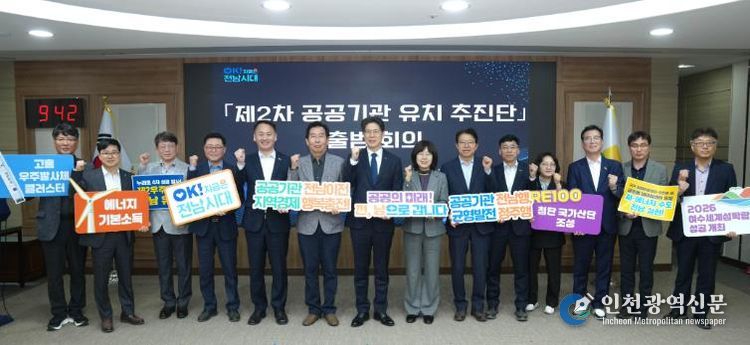 [인천광역신문] 최예준 기자 | 전라남도는 정부의 제2차 공공기관 지방이전 논의가 가시화됨에 따라 29일 도청 서재필실에서 ‘제2차 공공기관 유치추진단’ 첫 회의를 열어 유치 총력 대응 체제에 들어갔다.
