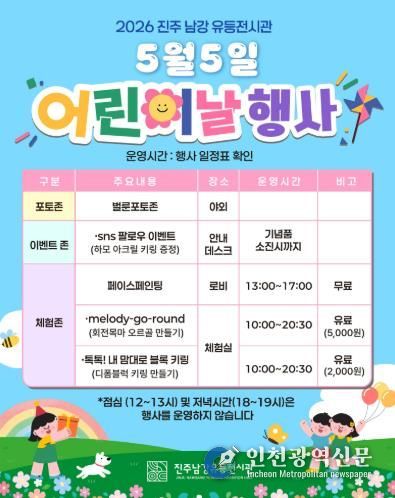[인천광역신문] 최예준 기자 | 진주시는 다가오는 5월 가정의 달과 어린이날을 맞아 박물관·미술관 등의 문화시설에서 다채로운 문화 체험 행사를 개최한다고 밝혔다.