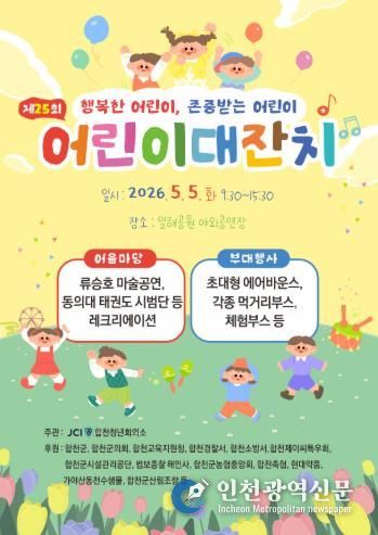 [인천광역신문] 최예준 기자 | 제104회 어린이날을 맞이하여 5. 5. 오전 9:30부터 일해공원 야외공연장에서 합천군 제25회 어린이 대잔치가 개최된다.