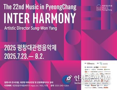 [인천광역신문] 관리자 기자 | 강원특별자치도지사는 제22회 평창대관령음악제 개최에 맞춰, 오는 7월 23일부터 26일까지 3박 4일간 평창, 태백, 정선, 강릉 일원에서 문화예술 향유와 도정 현안 점검을 병행하는 현장 중심의 일정을 추진한다.