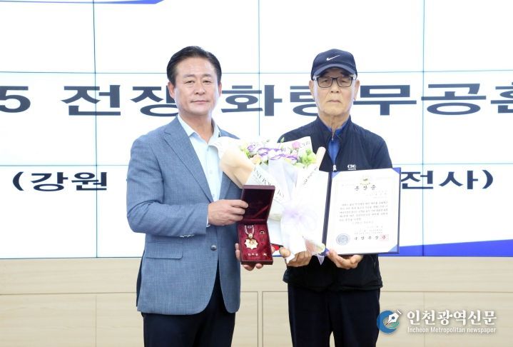 [인천광역신문] 관리자 기자 | 홍천군은 8월 4일 월례조회에서 6.25전쟁 강원 금화지구 전투에서 공적을 세운 故 박근학 병장의 화랑무공훈장을 유가족인 조카 박순규 씨에게 전달하며, 그의 헌신과 희생을 기렸다.