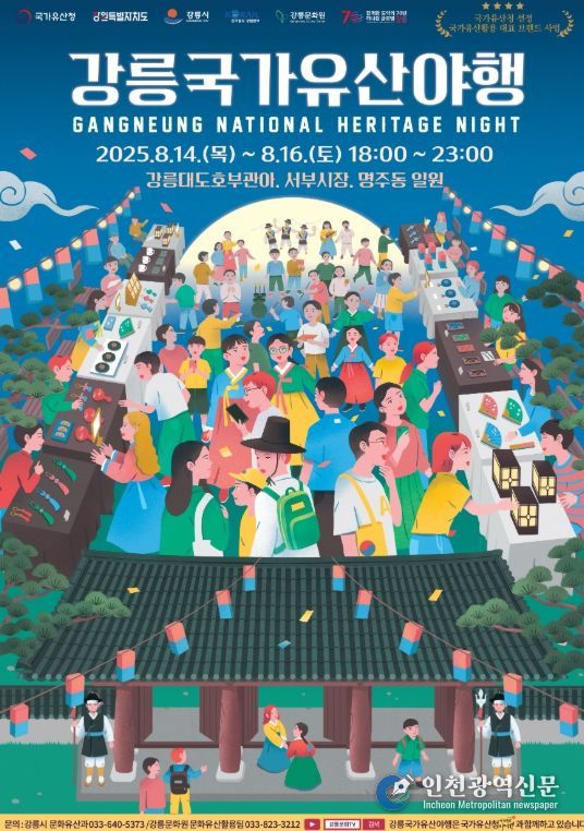 [인천광역신문] 관리자 기자 | 올해로 열세 번째를 맞는 2025 강릉국가유산야행이 오는 8월 14일부터 16일까지 3일간 강릉대도호부관아, 서부시장, 명주동 일원에서 개최된다.