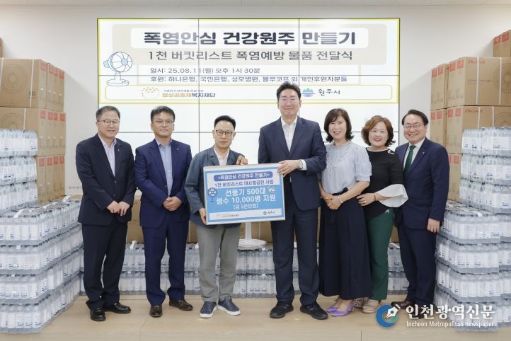 [인천광역신문] 관리자 기자 | 밥상공동체복지재단(대표 허기복)은 최근 지속되는 폭염과 기후위기로 어려움을 겪고 있는 저소득 취약계층을 지원하기 위해 3천만 원 상당의 선풍기 500대와 800만 원 상당의 생수 500박스를 후원했다.