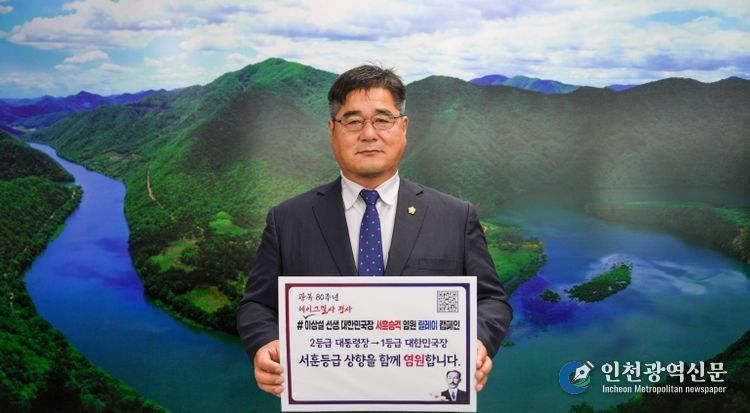 충북 괴산군의회 김낙영 의장이 8일, 보재 이상설 선생의 서훈을 대통령장(2등급)에서 대한민국장(1등급)으로 격상하자는 취지의 '이상설 선생 서훈 승격 염원' 릴레이 캠페인에 동참했다.